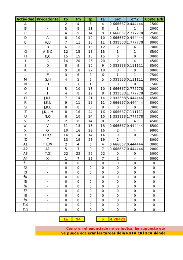 He publicado nuevos ejercicios de 3º Gestión de Empresas y Proyectos: Solución Problema 8 GEP (GANTT_PERT).xlsx