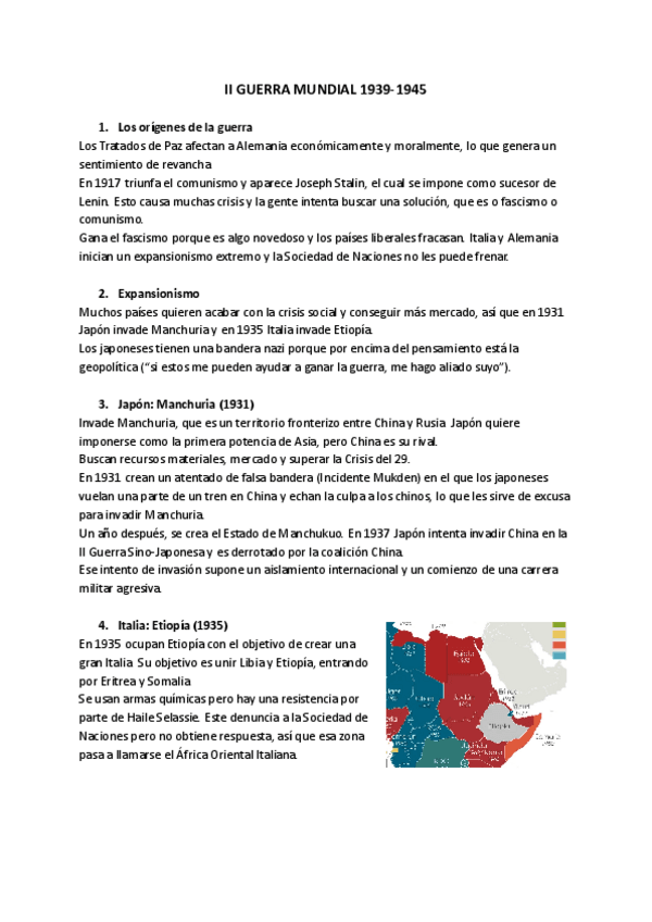 Apuntes de la Segunda Guerra Mundial completos con imágenes. Contiene: - Orígenes completos de la guerra. - Importancia de Japón e Italia. - Eje Berlín-Roma-Tokio. - Comienzo de la II Guerra Mundial. - Invasiones en Europa. - Invasiones a la Unión Soviéti