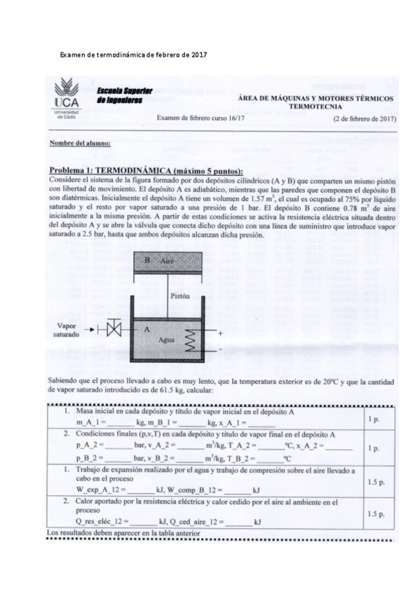 He publicado nuevos examenes de 1º Apuntes Variados: Examen de termodinamica de calor de febrero de 2017.pdf
