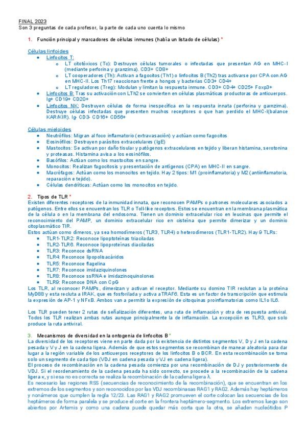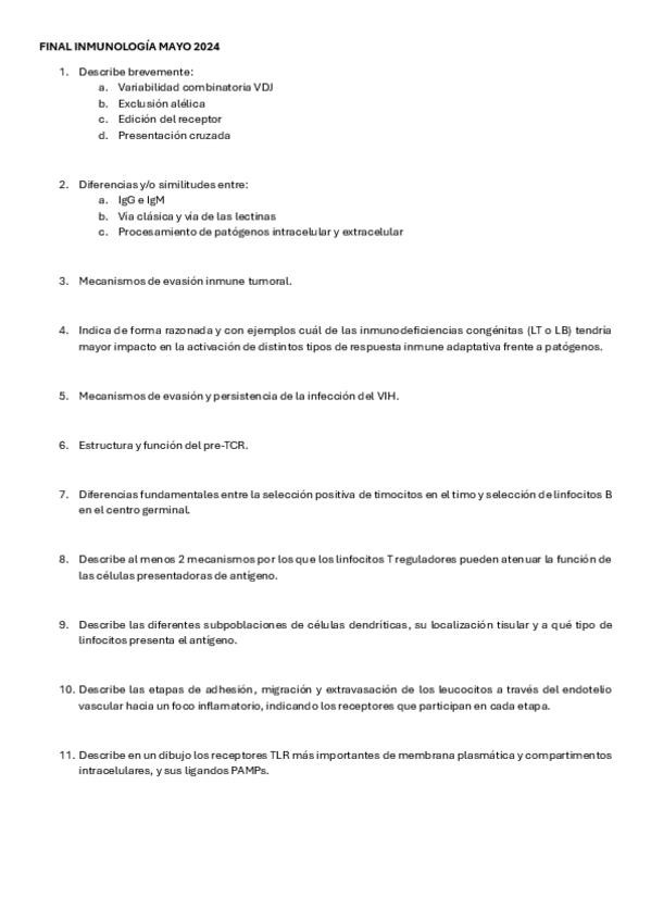 He publicado nuevos examenes de 3º Inmunología: Examen final