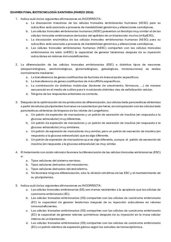 He publicado nuevos examenes de 4º Biotecnología Sanitaria: Examen final