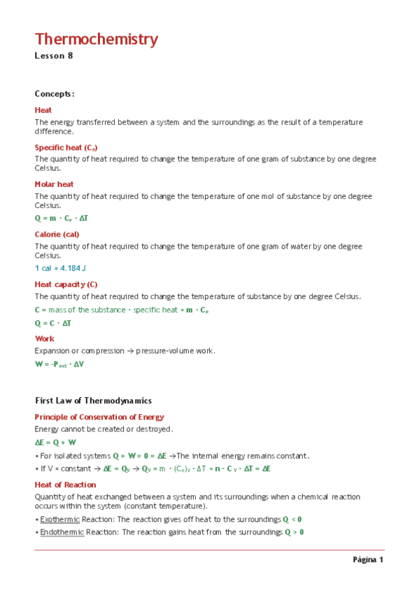 He publicado nuevos apuntes de 1º Química: Lesson 8 Thermochemistry.pdf