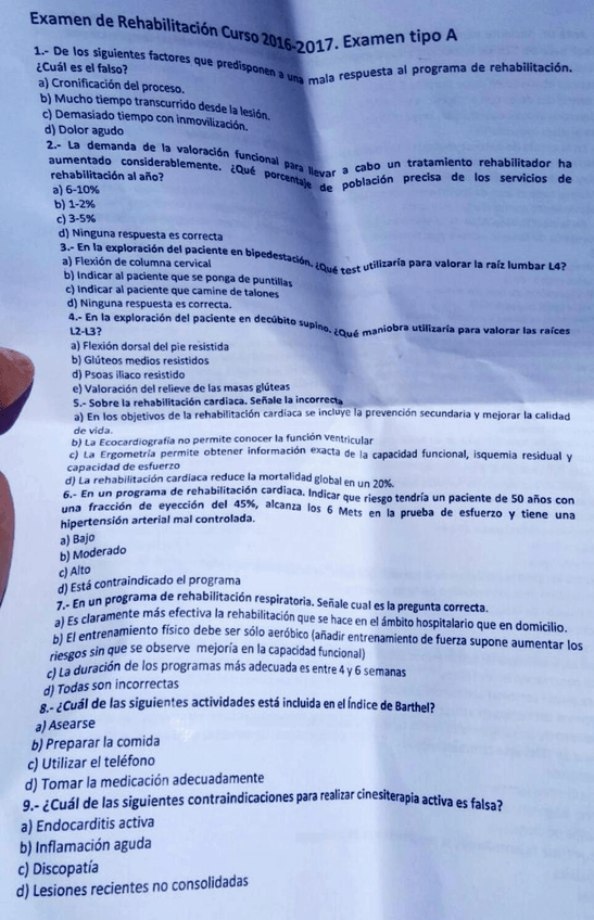 He publicado nuevos examenes de 4º Rehabilitación: Examen junio 2017
