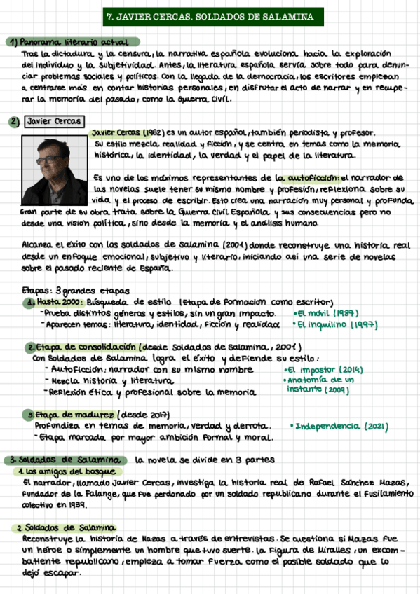 Apuntes del fragmento narrativo de Javier Cercas