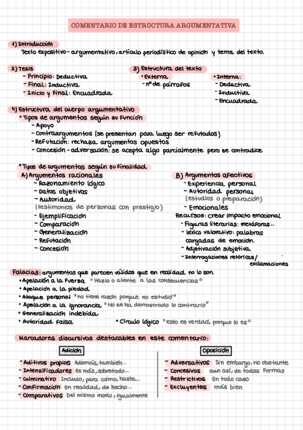 Apuntes del comentario de estructura argumentativa