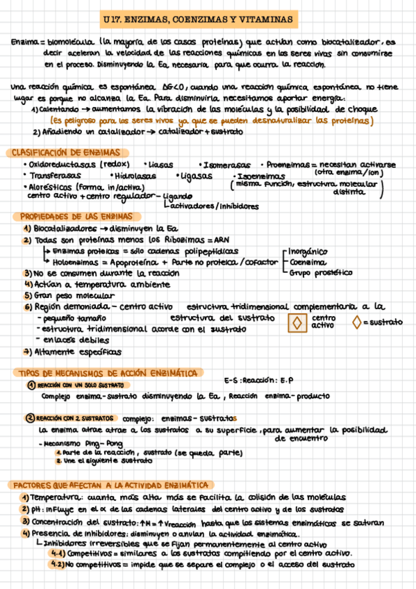 Apuntes BACHILLERATO Y PAU enzimas, coenzimas y vitaminas