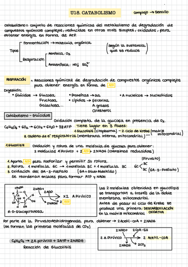 Apuntes de la unidad de catabolismo de Bachillerato y PAU