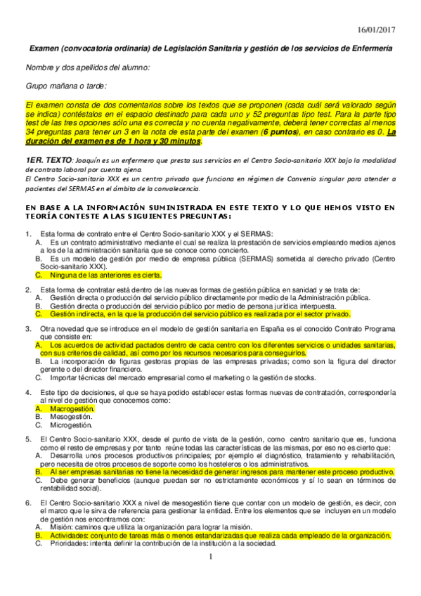 He publicado nuevos apuntes de 3º Legislación Sanitaria y Gestión de Servicios de Enfermería: Test legislación