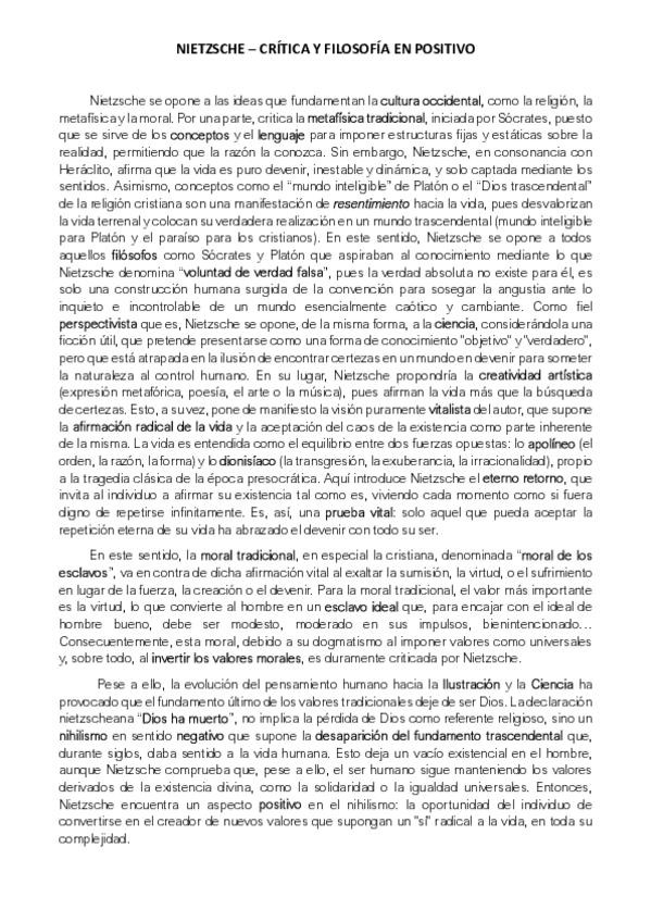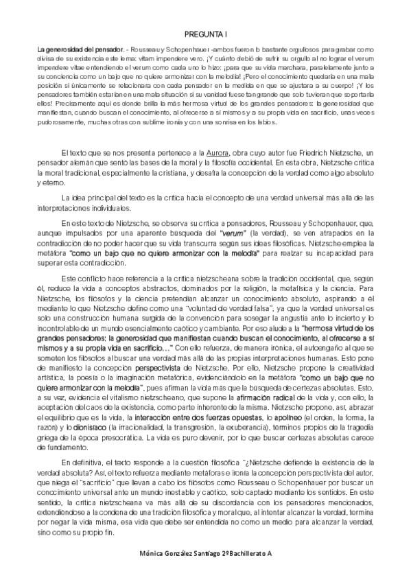 Ejemplo de comentario de texto filosófico (simulacro examen PAU) del autor NIETZSCHE- Preguntas I y II del modelo de examen respondidas. Creo que está muy bien y puede servir de ayuda!
