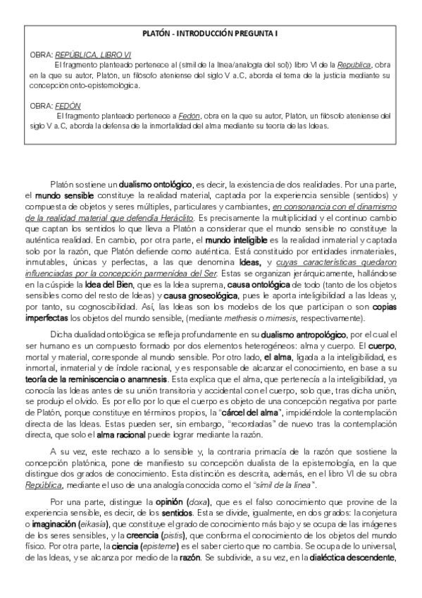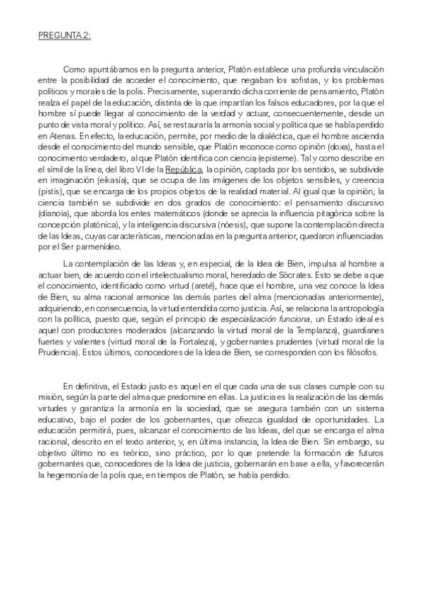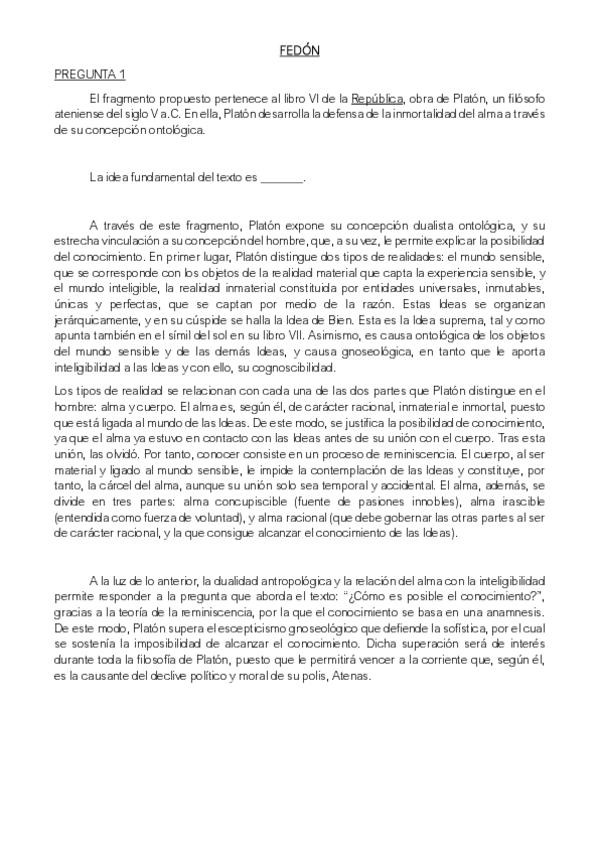 Modelo de respuesta para la pregunta I y II del examen de la PAU (bloque de metafísica y epistemología).
