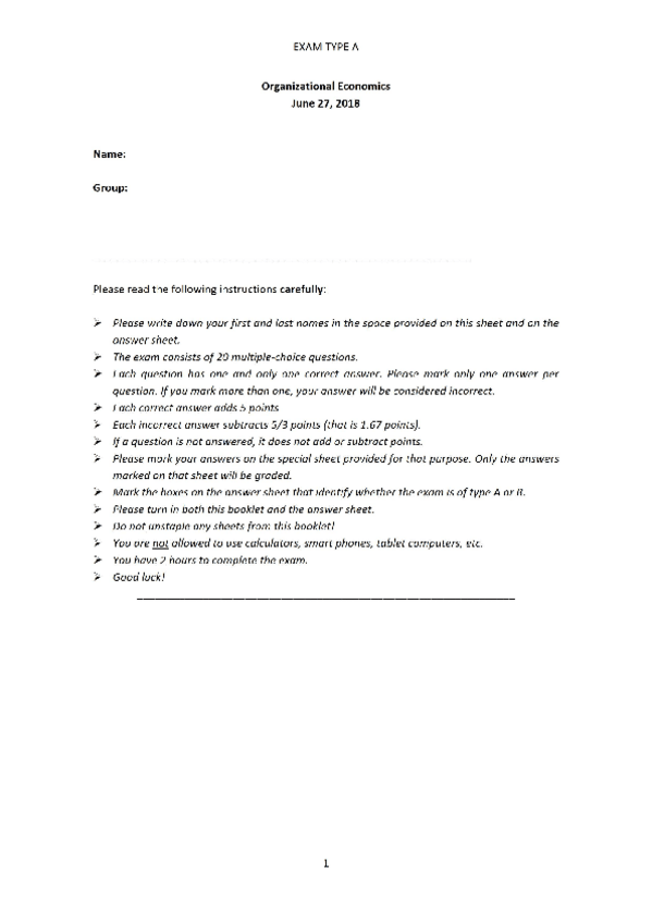 He publicado nuevos apuntes de 3º Economia de las Organizaciones: Examen ejemplo 2018