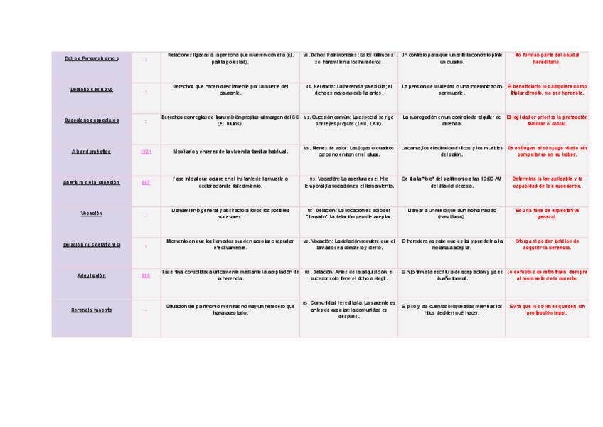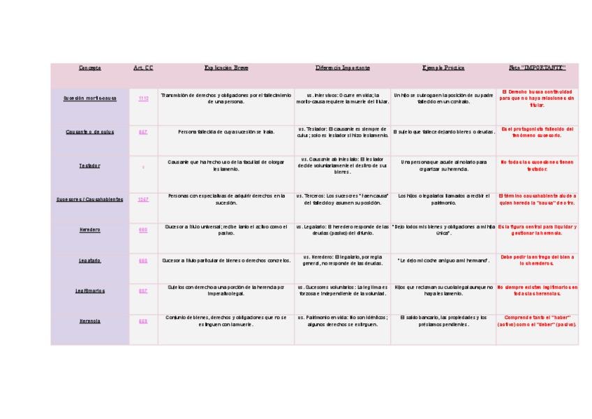 Tabla comparativa con TODOS los conceptos de los Temas 1, 2, 3, 4, 5 y 6. Incluye artículos del CC, ejemplos de clase y aclaraciones sobre conceptos difíciles.