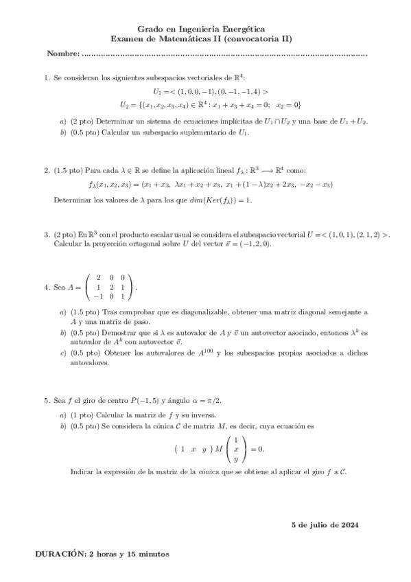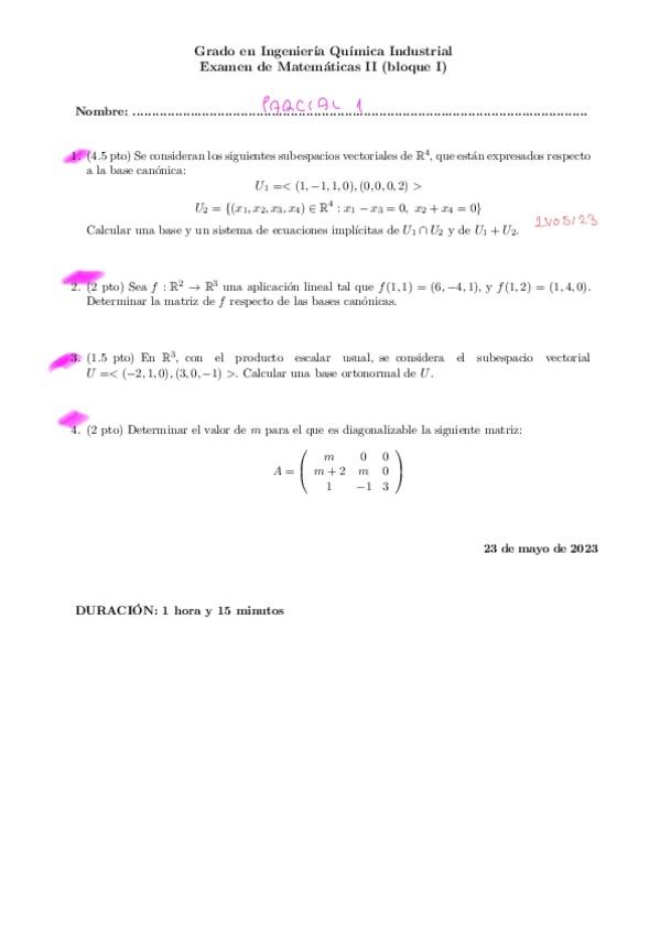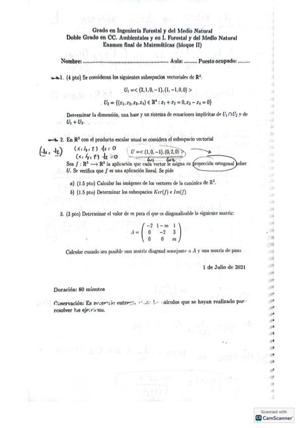 He publicado nuevos examenes de 1º Matemáticas II: Exámenes