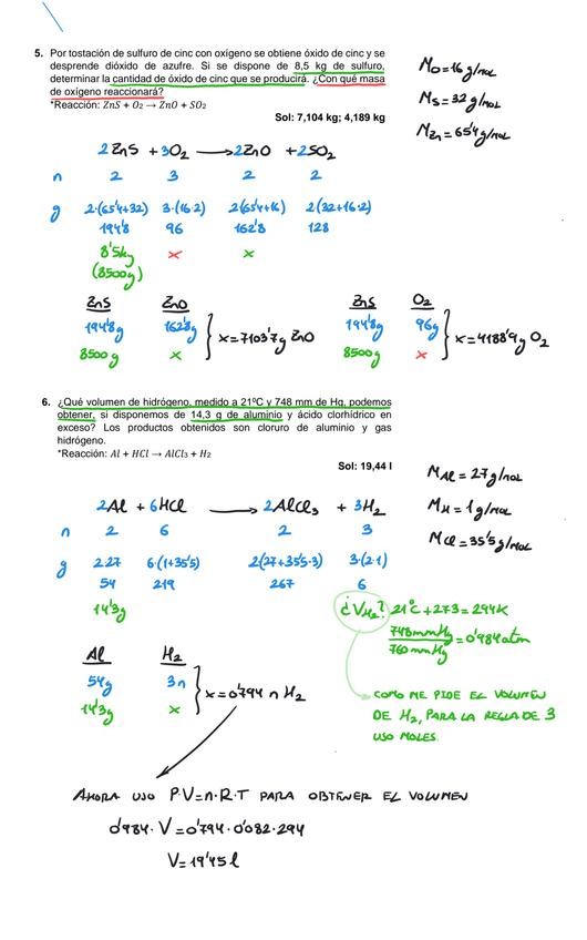Ejercicios resueltos de estequiometría y reacciones químicas paso a paso. Incluye ejercicios de riqueza, reactivo limitante y en exceso y rendimiento.