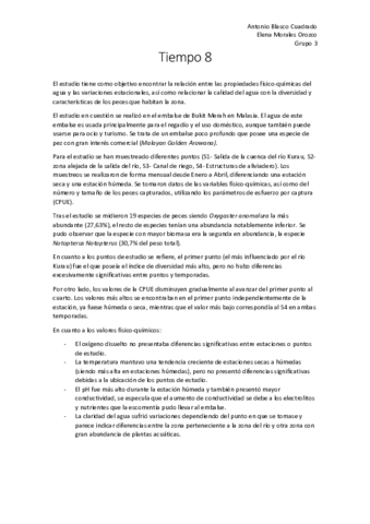 He publicado nuevos trabajos de 4º Funcionamiento y Gestion de Ecosistemas Acuaticos: Tiempo 8 (Embalse Bukit Merah)