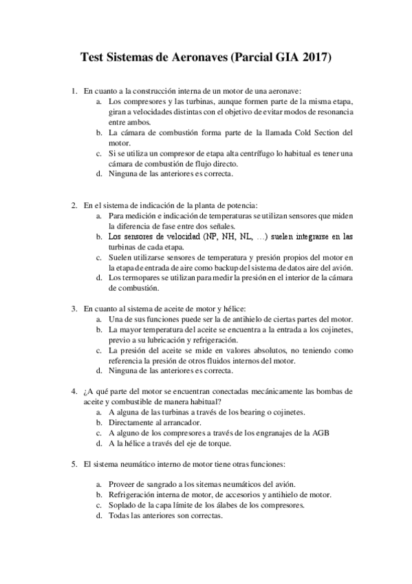 He publicado nuevos test de 4º Sistemas de Aeronaves: Sistemas de Aeronaves
