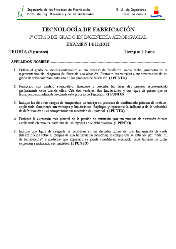 He publicado nuevos apuntes de 2º Tecnología de Fabricación: Examenes 2012/17