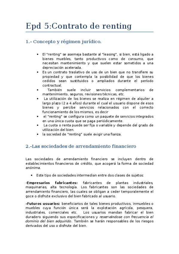 He publicado nuevos apuntes de 3º Derecho Mercantil II: EPD 5 RENTING