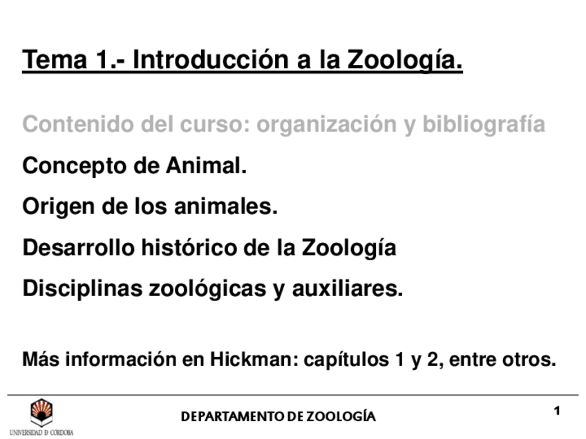 Temas 1 y 2 Zoología