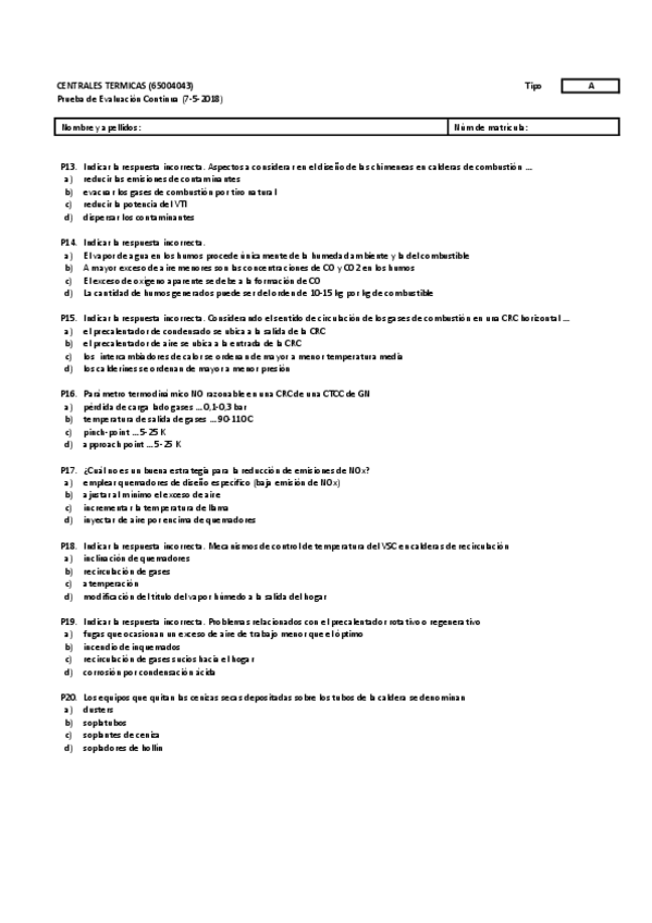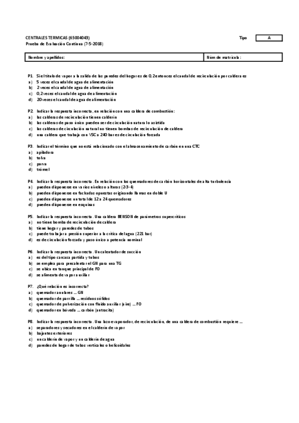He publicado nuevos examenes de 3º Centrales Térmicas: PARCIAL 2 - 2018