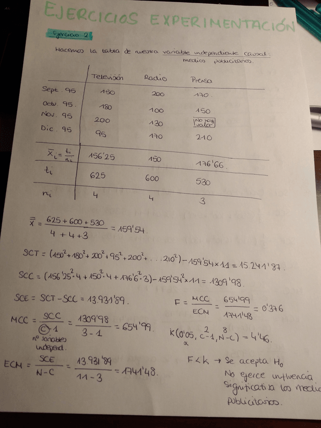 EJERCICIOS EXPERIMENTACION