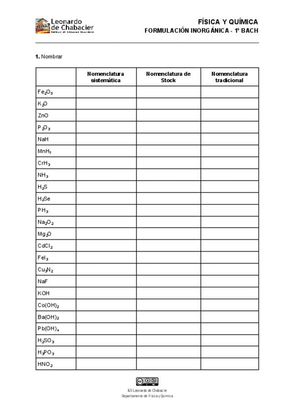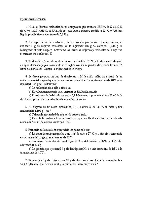 EJERCICIOS QUÍMICA 1ºBACH