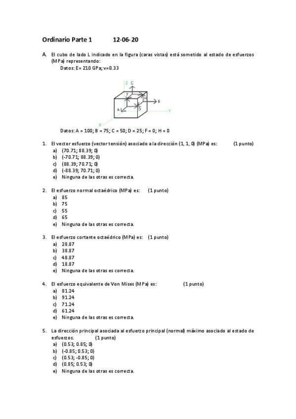 He publicado nuevos examenes de 2º Resistencia de Materiales y Elasticidad: Exámenes 2019-20 sin solución
