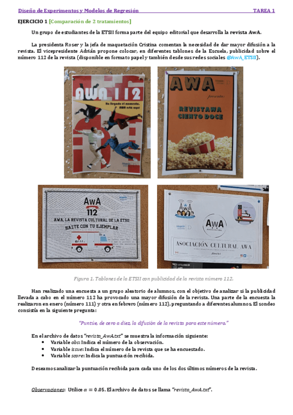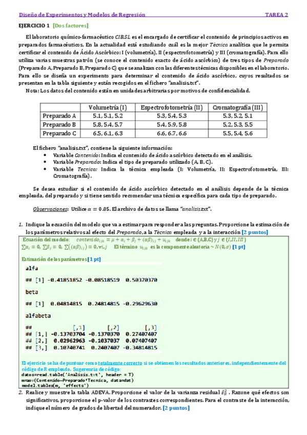 He publicado nuevos apuntes de 2º Diseño de Experimentos y Modelos de Regresión: Tarea 1 solucion