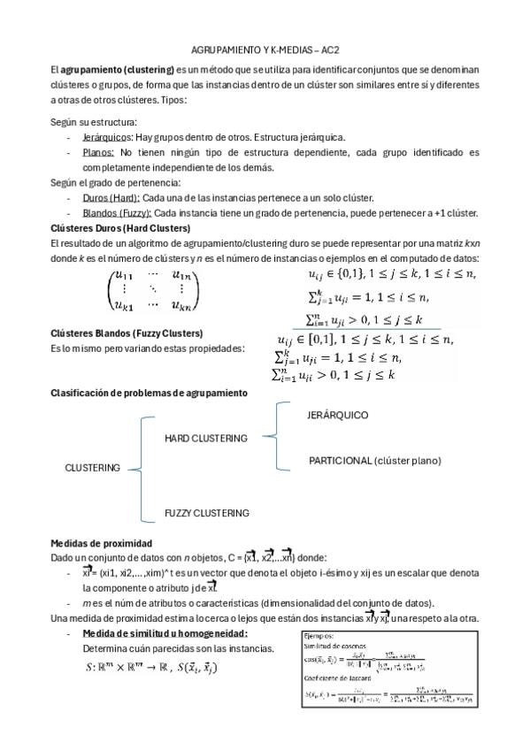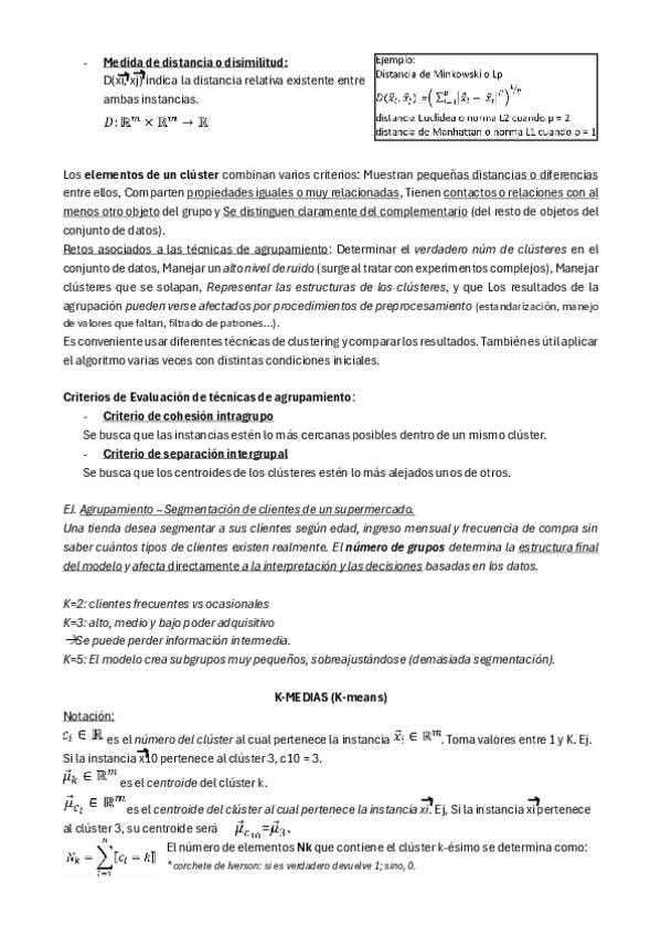 Apuntes de los bloques de Agrupamiento (Clustering) y K-medias (K-means) de Aprendizaje Computacional II con ejemplos resueltos.