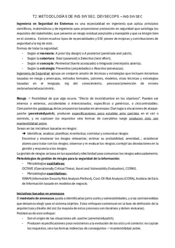 Apuntes completos del T2 Metodologías de Ingeniería del Software Seguro de la asignatura de Ingeniería del Software Seguro.