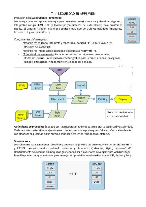 Apuntes del T1 - Introducción a la Seguridad en Entornos Web de la asignatura de Seguridad en Aplicaciones Web completos.