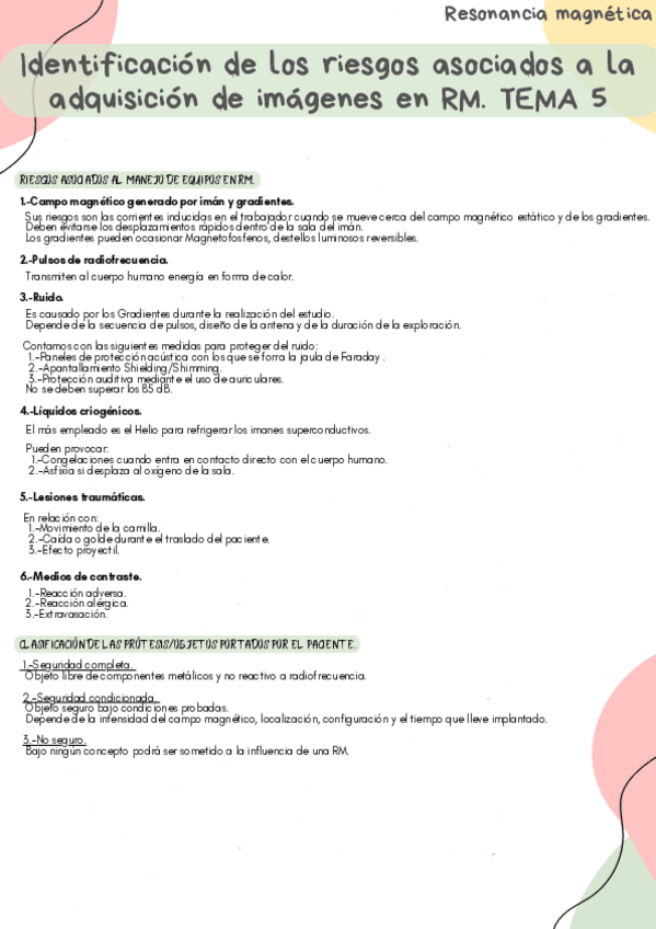 Identificación de los riesgos asociados a la adquisición de imágenes en RM.