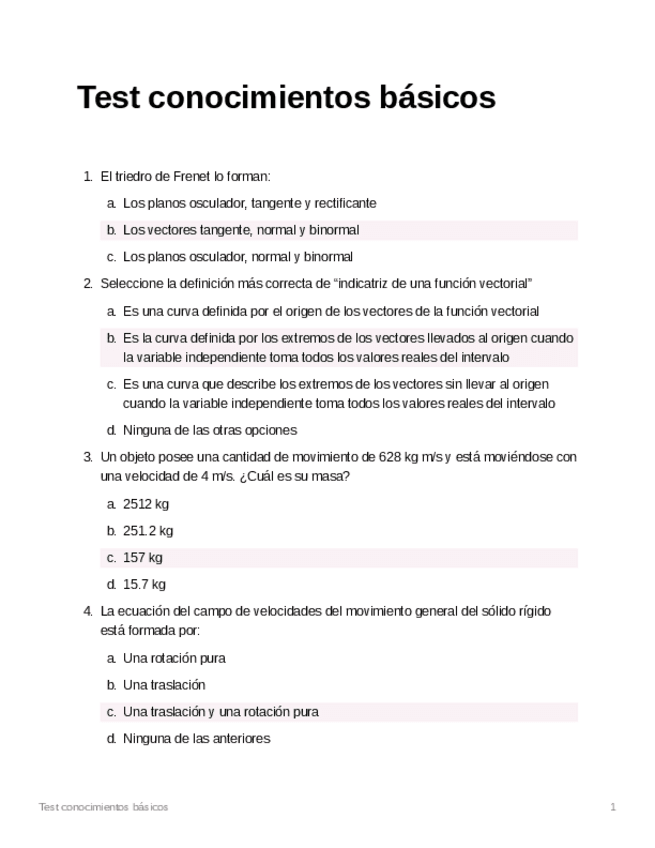 Test conocimientos básicos, preguntas cortas y problemas