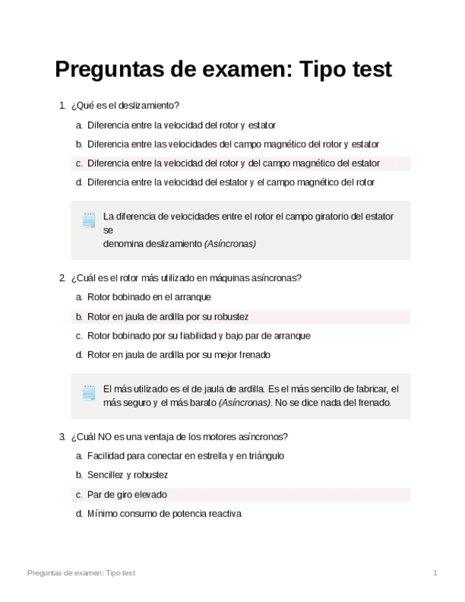 Tipo test, preguntas cortas, cuestiones y problemas