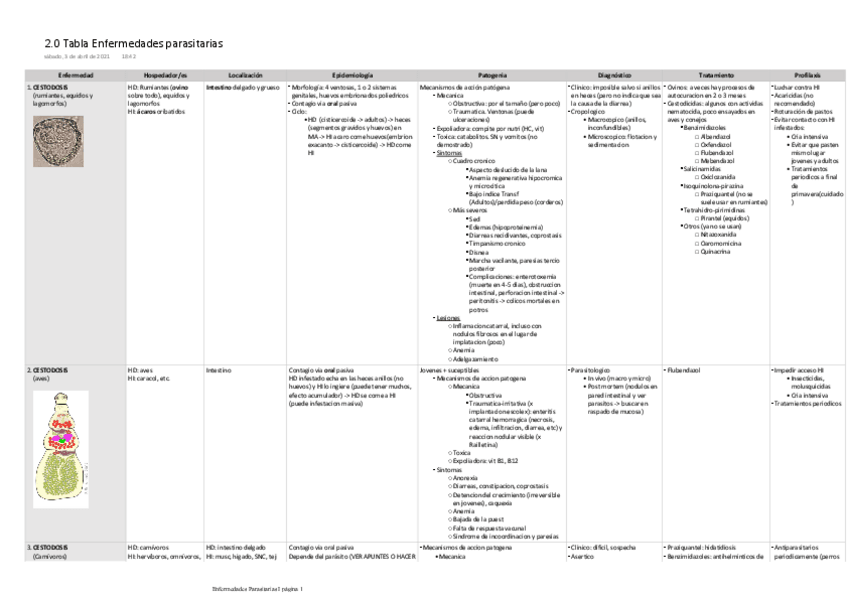 He publicado nuevos apuntes de 3º Enfermedades Parasitarias I: Tablas Parciales Parasitarias I
