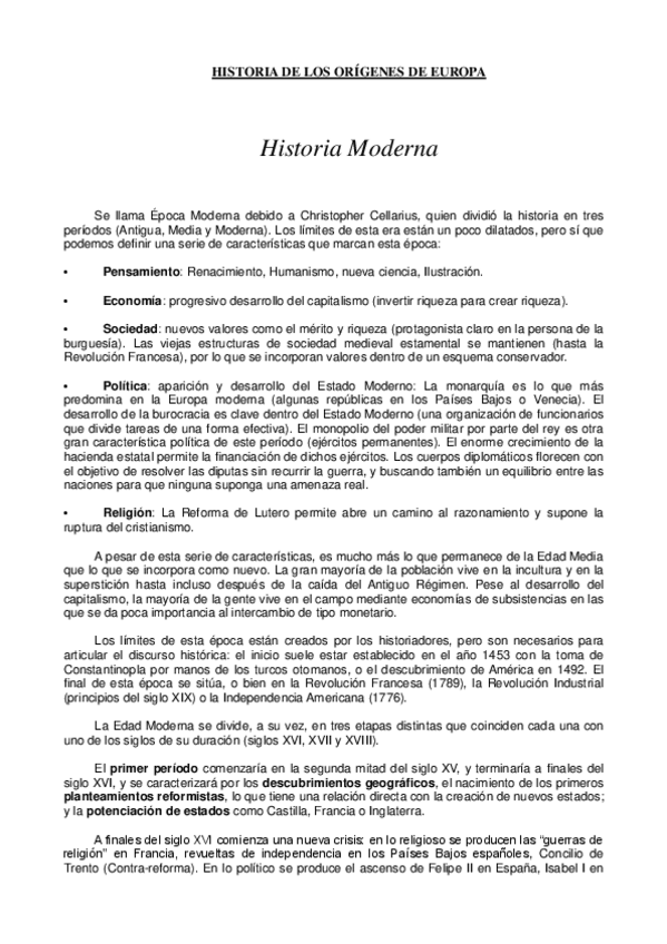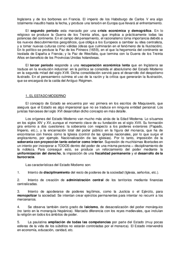 Apuntes segundo cuatrimestre. Desde el siglo XV hasta la Guerra de Sucesión española.