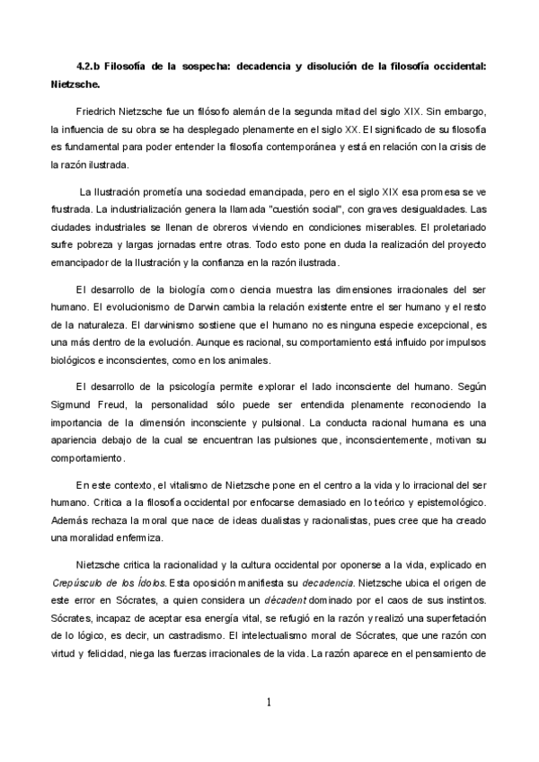 Redacción filosofía de la sospecha decadencia y disolución de la filosofía occidental. Nietzsche.