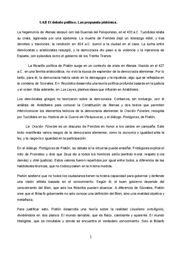 Redacción. El debate político. Las propuestas platónica y aristotélica sobre el mejor orden social.