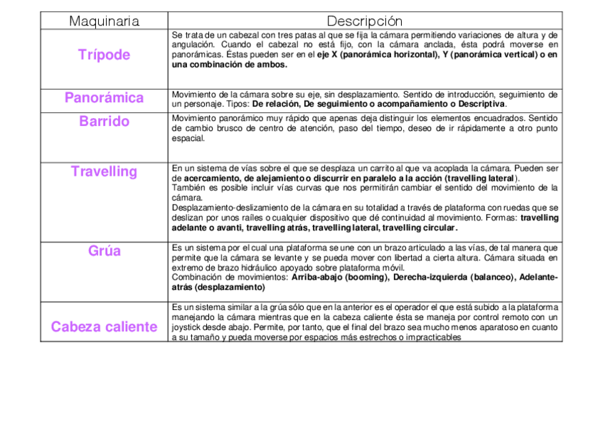 Profesora Ana Sedeño El tema 4 tiene una parte de apuntes pero los tipos de plano, angulación y maquinaria están hechos a modo de tabla para que sea más fácil estudiarlo :)