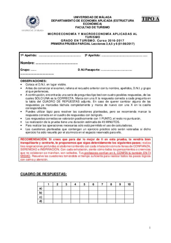 He publicado nuevos examenes de 1º Microeconomía y Macroeconomía Aplicadas al Turismo: PRUEBAS PARCIALES