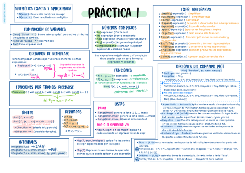 Esquema completo de todos los comandos de la práctica 1 de mathematica. AMPLIACIÓN DE MATEMÁTICAS.