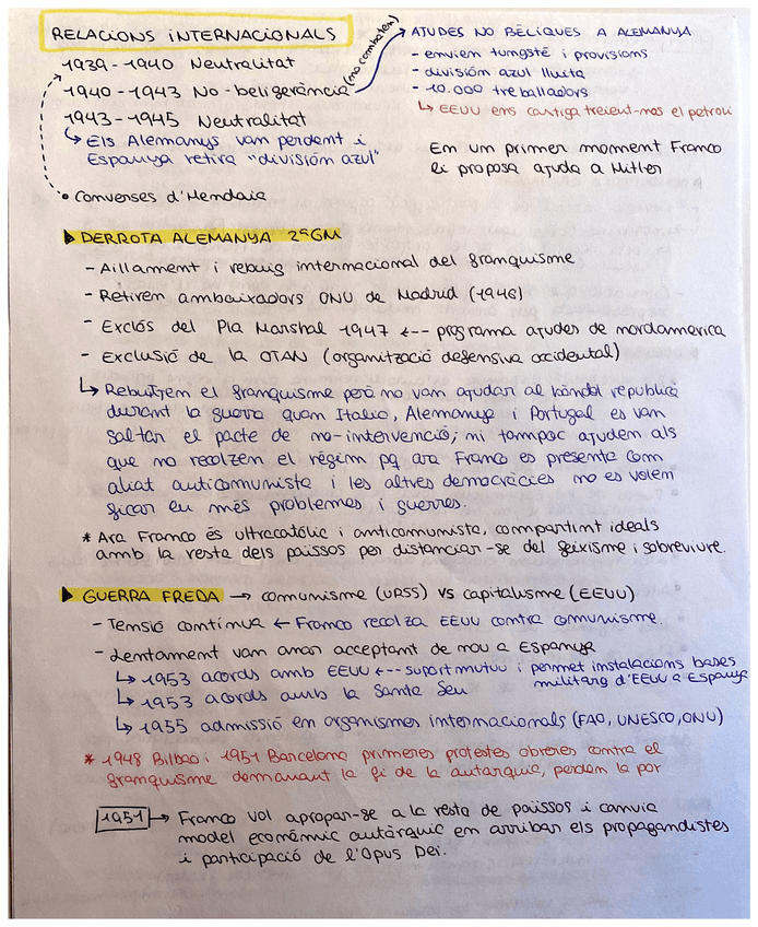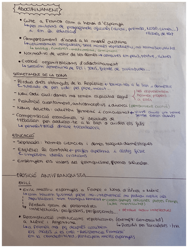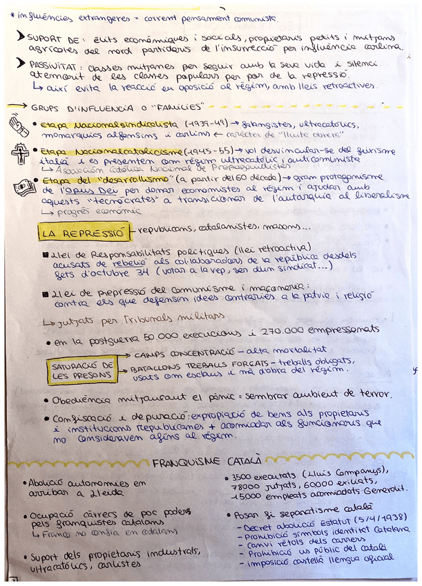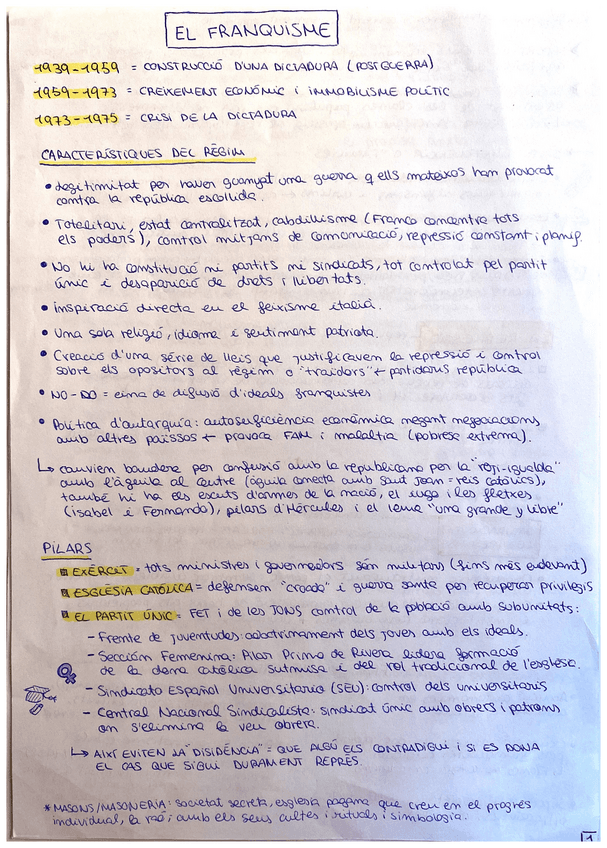 Apuntes a mano sobre el Franquismo: etapas, características, cronologia...