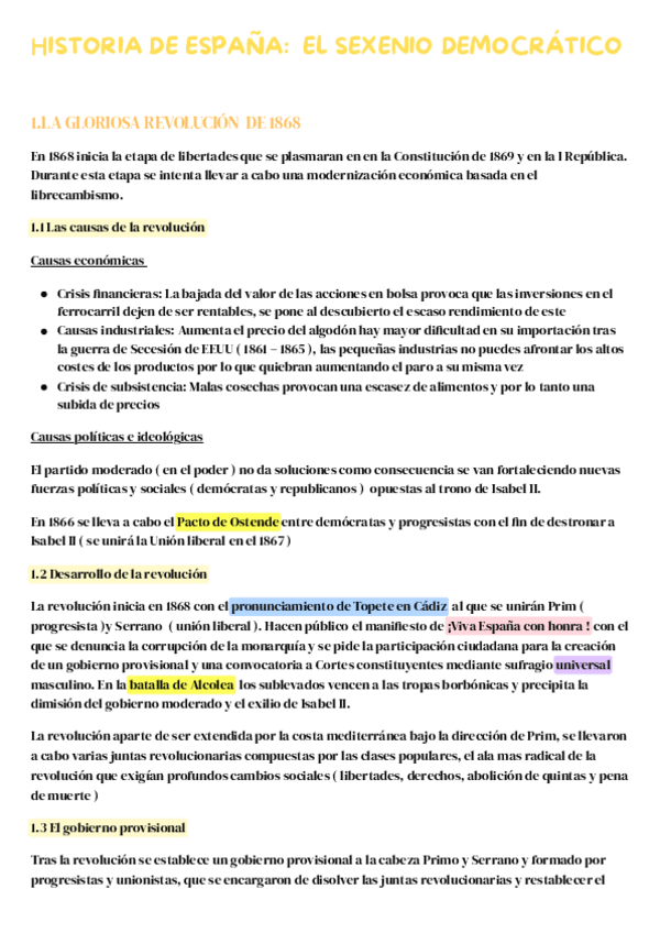TEMA 4 EL SEXENIO DEMOCRÁTICO HISTORIA DE ESPAÑA. Iré colgando todo el temario de todas las asignaturas para la preparación de la PAU 2026 además de ejercicios de repaso tanto de clase como de PAU