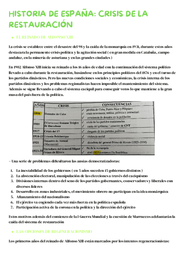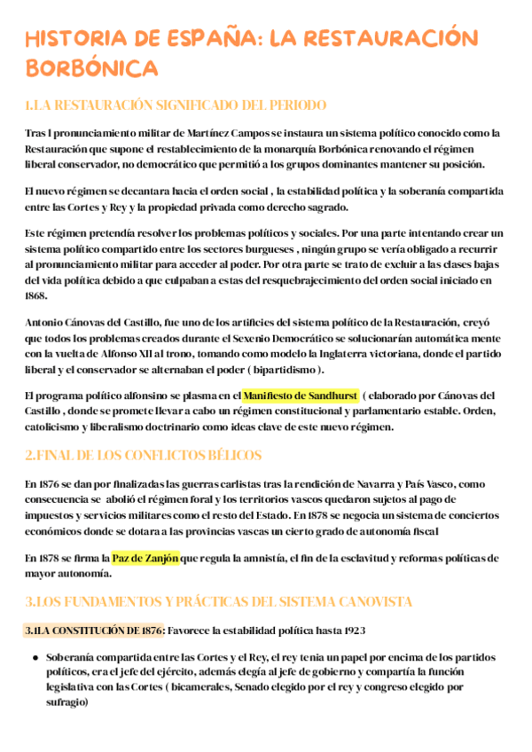 TEMA 5 LA RESTAURACIÓN BORBÓNICA HISTORIA DE ESPAÑA. Iré colgando todo el temario de todas las asignaturas para la preparación de la PAU 2026 además de ejercicios de repaso tanto de clase como de PAU