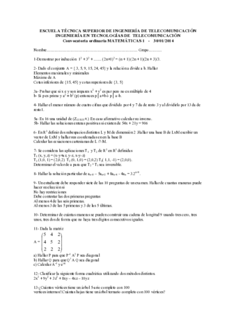 He publicado nuevos examenes de 1º Matemáticas 1: Varios examenes