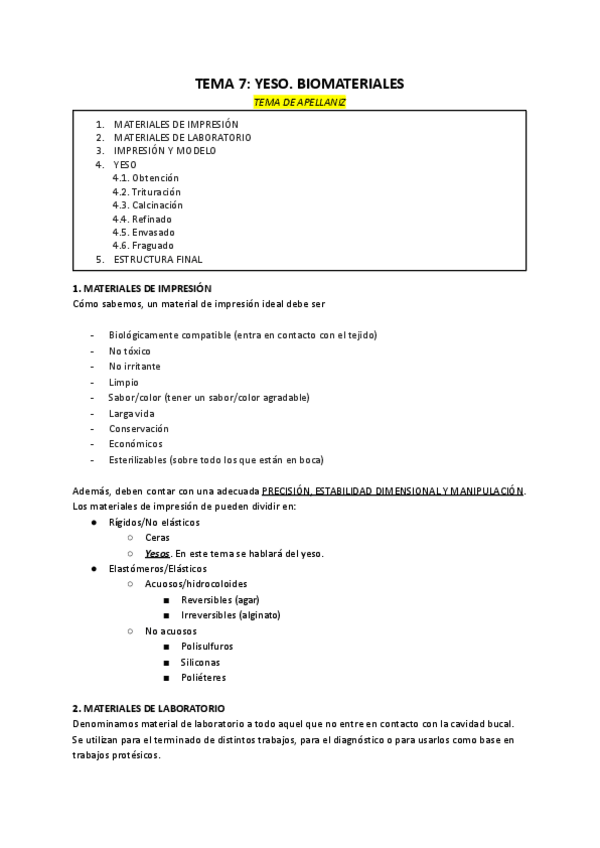 He publicado nuevos apuntes de 3º Biomateriales Odontológicos: TEMA-7-YESO-.docx.pdf