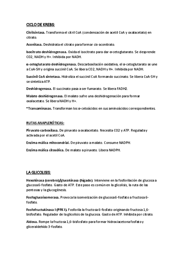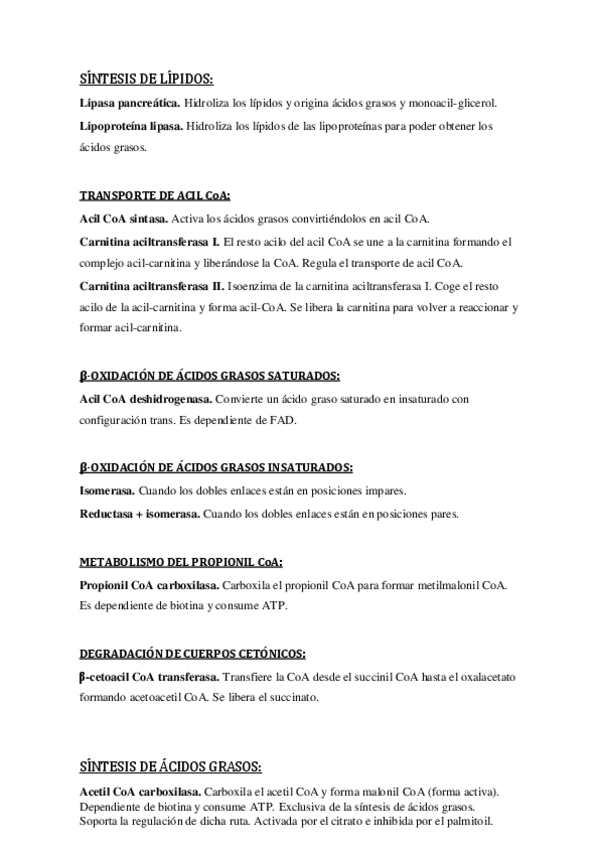 Resumen de las enzimas más destacadas en el metabolismo