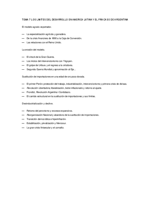 tema 7 historia siglo xx optativa 3º - los limites del desarrollo de américa latina y el fracaso de argentina