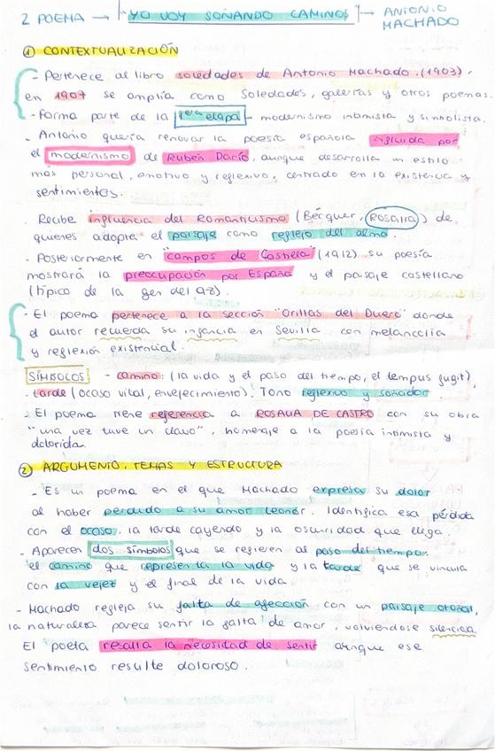Resumen PAU poema “YO VOY SOÑANDO CAMINOS” Antonio Machado