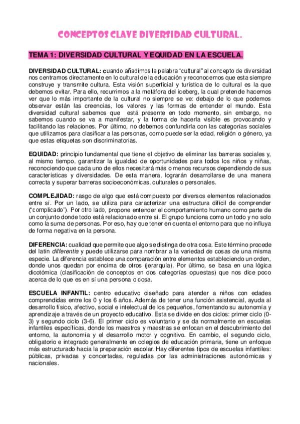 He publicado nuevos apuntes de 1º Diversidad Cultural y Equidad en la Escuela: CONCEPTOS-CLAVE-DIVERSIDAD-CULTURAL.pdf